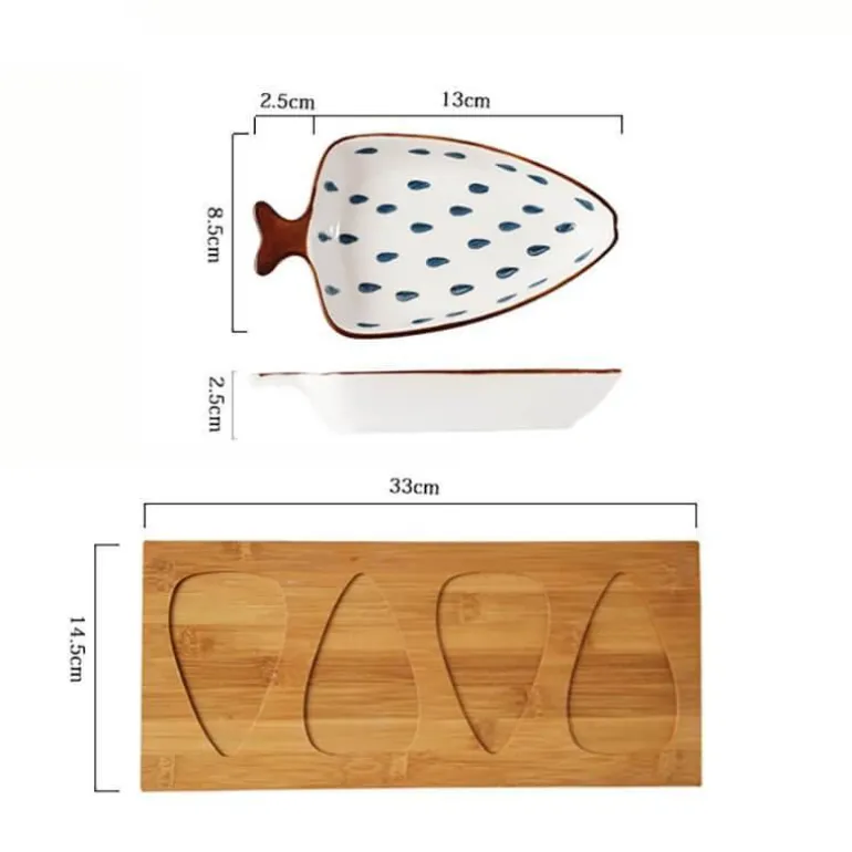 Veredeln Sie Ihr kulinarisches Erlebnis mit unseren wunderschön gestalteten Keramik-Snacktellern, inspiriert von der eleganten Form von Fischschwanzblättern. Dieses stilvolle Servierset umfasst vier verschiedene Teller, jeder mit einem bezaubernden Muster verziert, das Ihrem Tisch einen Hauch von naturinspirierter Eleganz verleiht. Diese Teller eignen sich perfekt zum Präsentieren verschiedener Speisen, wie z. B. kleiner Häppchen, Vorspeisen oder Desserts, und dienen bei Nichtgebrauch auch als auffällige Dekoration.