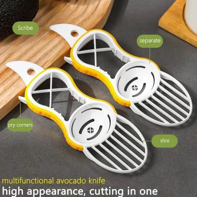 Erleben Sie den Komfort unseres All-in-One-Küchenwerkzeugs, das mühelos Avocados und Kiwis schneidet und gleichzeitig als zuverlässiger Flaschenöffner dient. Dieses vielseitige und benutzerfreundliche Gerät schneidet gleichmäßige Scheiben von weichem Obst und sorgt so für eine reibungslose Zubereitung Ihrer Lieblingsrezepte oder Snacks. Der integrierte Flaschenöffner bietet zusätzliche Funktionalität und ermöglicht Ihnen das mühelose Öffnen Ihrer Lieblingsgetränke. Dieses kompakte und benutzerfreundliche Multifunktionswerkzeug ist ideal für alle, die ihre Küchenarbeit vereinfachen möchten.