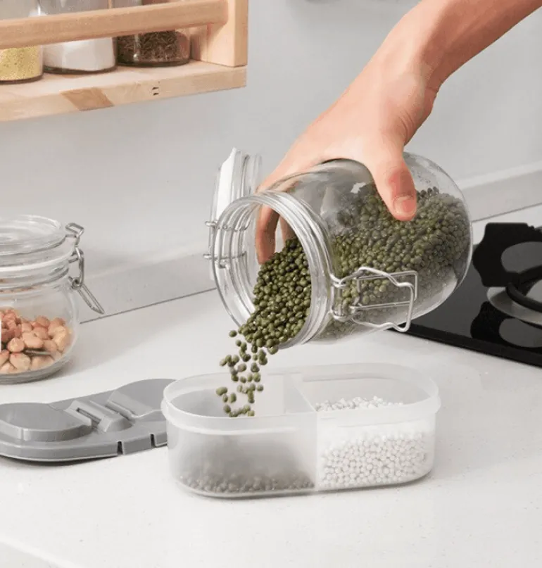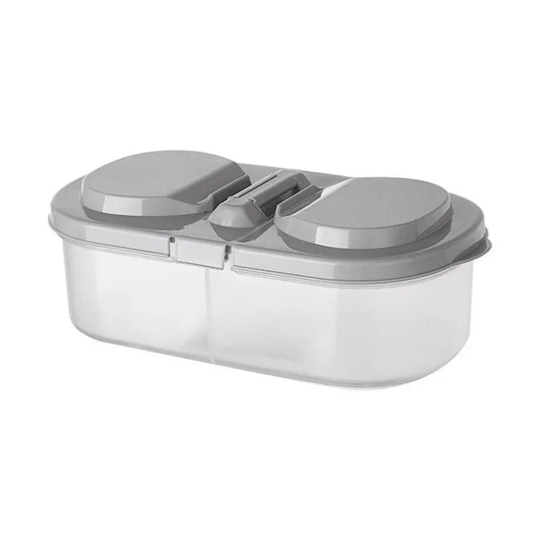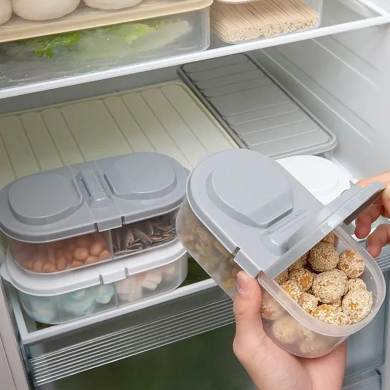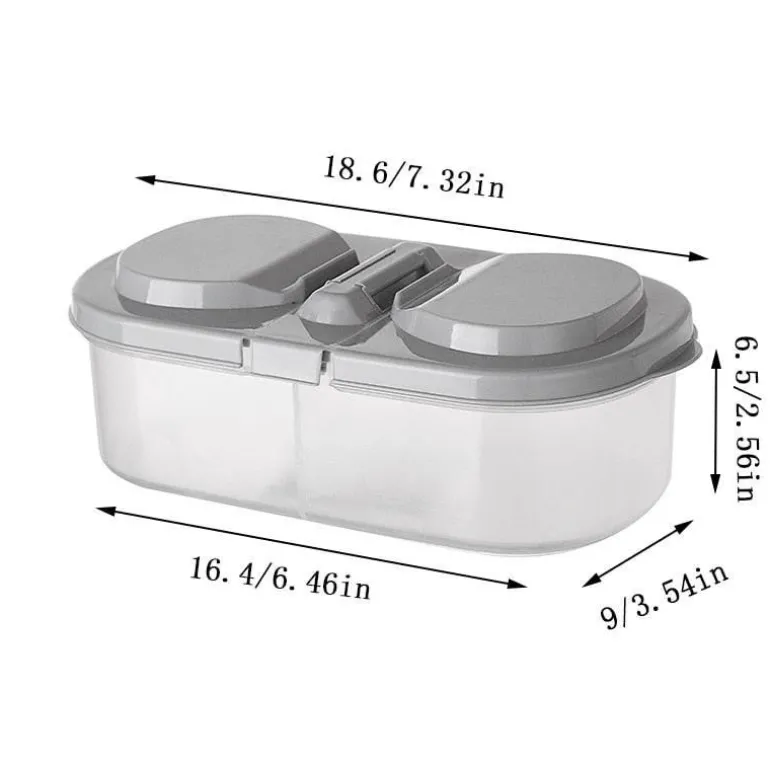 Optimieren Sie Ihre Lebensmittelaufbewahrung mit der Doppelkammer-Frischhaltebox, einem versiegelten Vorratsbehälter, der Ihre Zutaten länger frisch hält. Dieses vielseitige Küchenzubehör bietet eine effiziente und übersichtliche Lösung für eine Vielzahl von Lebensmitteln und sorgt für Ordnung in Ihrer Speisekammer und gleichzeitig für die Qualität Ihrer Zutaten.