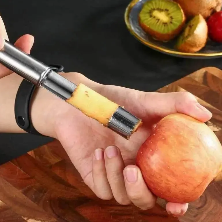 Erleben Sie den Komfort unseres Edelstahl-Obstkernmessers – ein unverzichtbares Werkzeug für jeden kulinarischen Liebhaber. Dieser elegant gestaltete Entkerner aus hochwertigem Edelstahl vereinfacht die Zubereitung Ihrer Lieblingsfrüchte und macht das Kochen zum Kinderspiel.