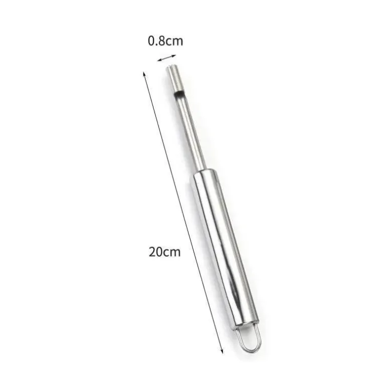Dieses vielseitige Messer wurde speziell zum Entkernen verschiedener Früchte entwickelt, darunter Birnen, Kirschen, Datteln und rote Datteln. Die robuste Edelstahlkonstruktion garantiert Langlebigkeit und macht es zu einem zuverlässigen Begleiter für alle Ihre Kochvorhaben.