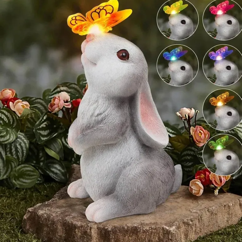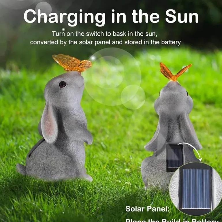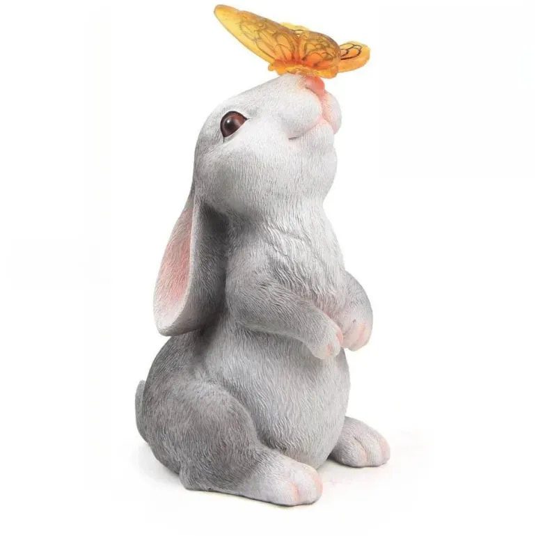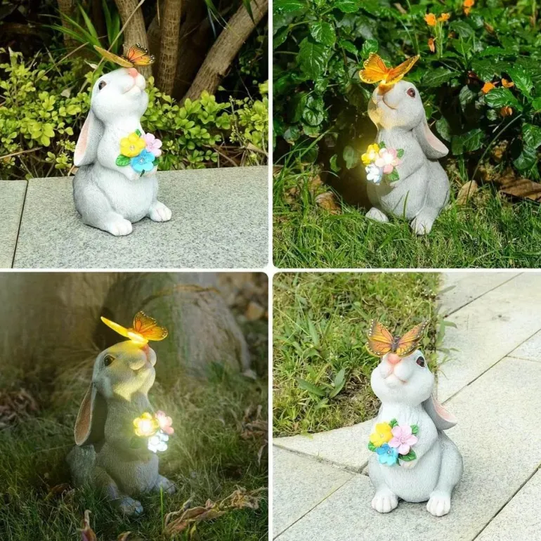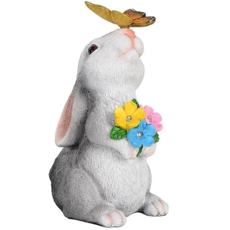 Verwandeln Sie Ihren Außenbereich mit dieser bezaubernden Gartenleuchte in ein zauberhaftes Märchen. Mit einem wunderschön gestalteten Häschen, umgeben von leuchtenden Schmetterlingen und blühenden Blumen, erhellt dieses entzückende Dekorationsstück Ihren Garten oder Ihre Terrasse und verleiht ihm einen Hauch von verspieltem Charme, der Freude und Fantasie anregt.