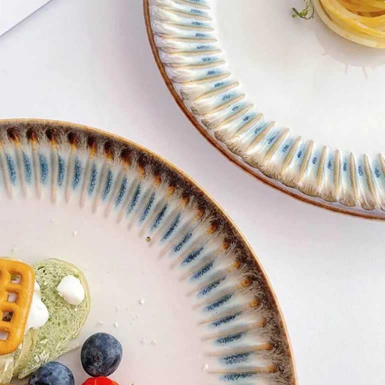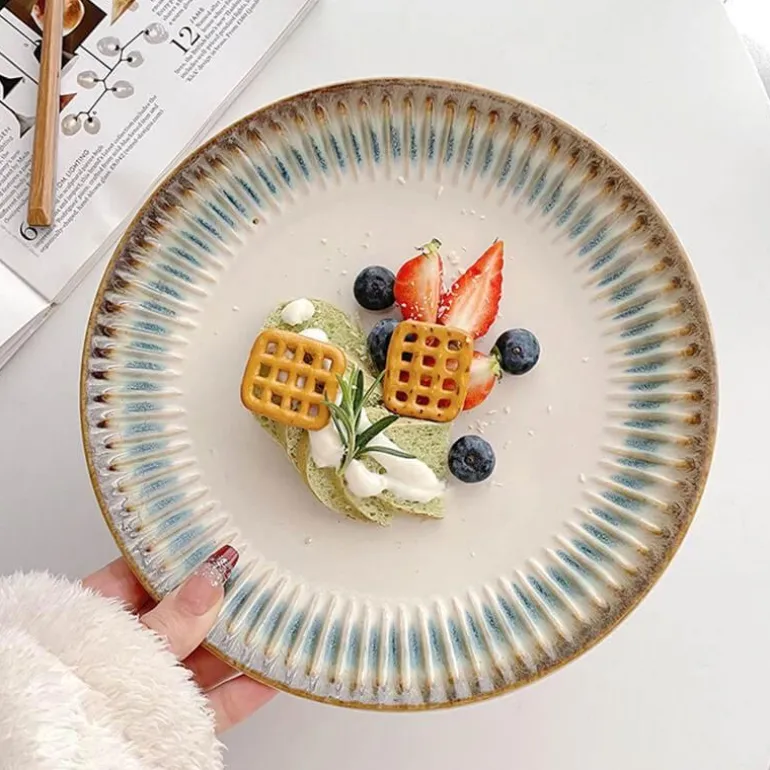 Dieser Teller aus hochwertiger Keramik mit glänzender Glasur ist optisch ansprechend und langlebig und lässt sich leicht pflegen. Ob Sie ein köstliches Gericht servieren oder ihn als dekorativen Akzent in Ihrem Zuhause verwenden – sein durchdachtes Design hinterlässt garantiert einen bleibenden Eindruck.
