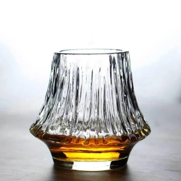 Erleben Sie die Verbindung von Eleganz und Funktionalität mit diesem gerippten Trinkglas. Sein markantes Design erinnert an die skulpturale Silhouette eines Vulkans. Die strukturierten Rillen fangen das Licht ein und brechen es, wodurch die natürlichen Farbtöne Ihrer Lieblingsgetränke optimal zur Geltung kommen. Der stabile, beschwerte Boden sorgt für Stabilität und eignet sich sowohl für zwanglose Zusammenkünfte als auch für elegantere Anlässe.