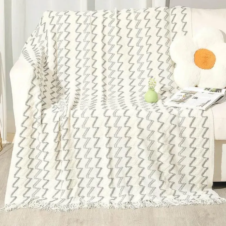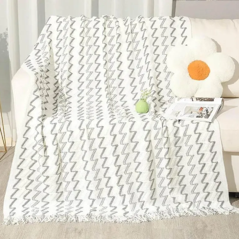 Diese vielseitige Decke für Frühling und Herbst vereint Strapazierfähigkeit und Komfort und wird so zu einem beliebten Begleiter in Ihrem Zuhause. Mit einer Farbechtheit von 4 sind ihre leuchtenden Farbtöne langlebig, während das geometrische Muster jedem Ambiente einen modernen Touch verleiht.