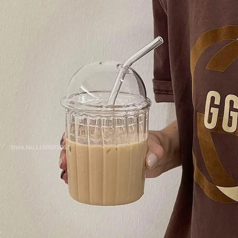 Wir präsentieren den 450 ml gestreiften Glasbecher mit Deckel und Strohhalm – eine elegante Ergänzung für Ihre Trinkgefäße. Dieser hochwertige, runde Becher eignet sich für den Genuss verschiedener Getränke, darunter Kaffee, Saft, Milch und Tee.
