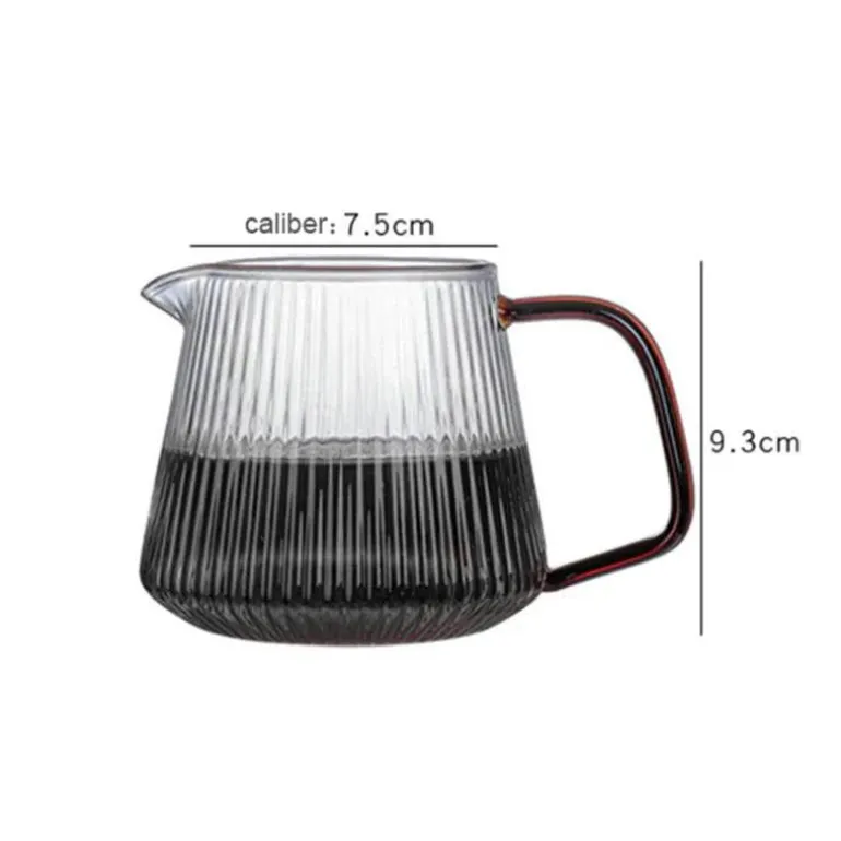 Erleben Sie die perfekte Kombination aus Eleganz und Funktionalität mit unserem gestreiften Glas-Kaffeekessel. Der V-förmige Ausguss sorgt für müheloses Ausgießen. Diese stilvolle Teekanne, erhältlich in zwei Größen – 350 ml und 500 ml – verleiht Ihrer Kaffee- und Teesammlung einen modernen Touch und ergänzt gleichzeitig Ihre Kücheneinrichtung.