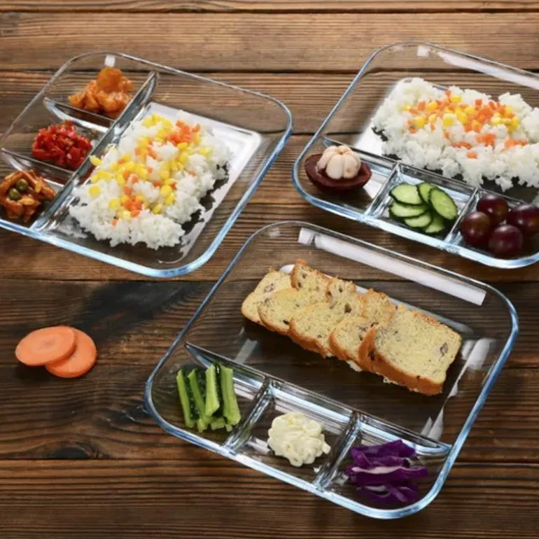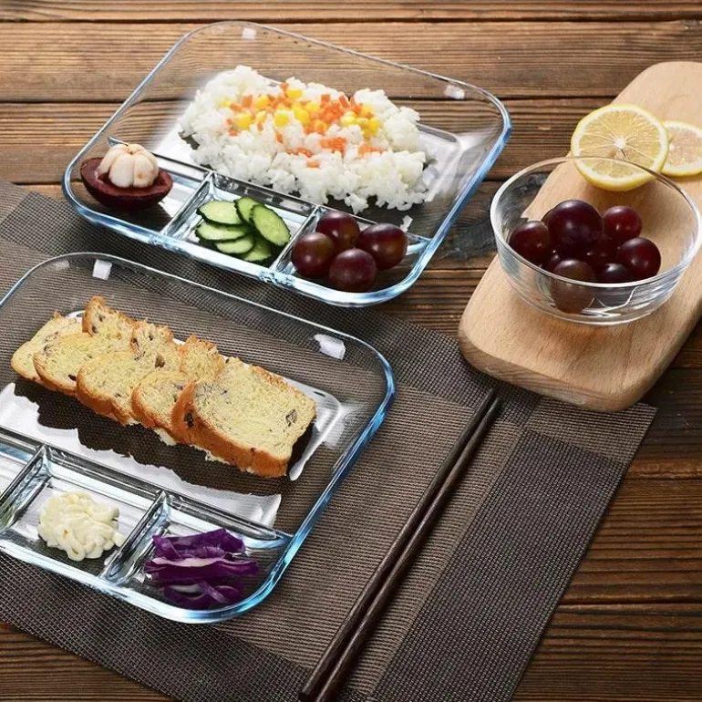 Der geteilte Essteller aus gehärtetem Glas bereichert Ihr Essenserlebnis durch seine Vielseitigkeit und Robustheit. Verleihen Sie Ihrem Essbereich mit diesem sorgfältig gefertigten Teller einen Hauch von Raffinesse und genießen Sie eine große Auswahl an kulinarischen Köstlichkeiten.
