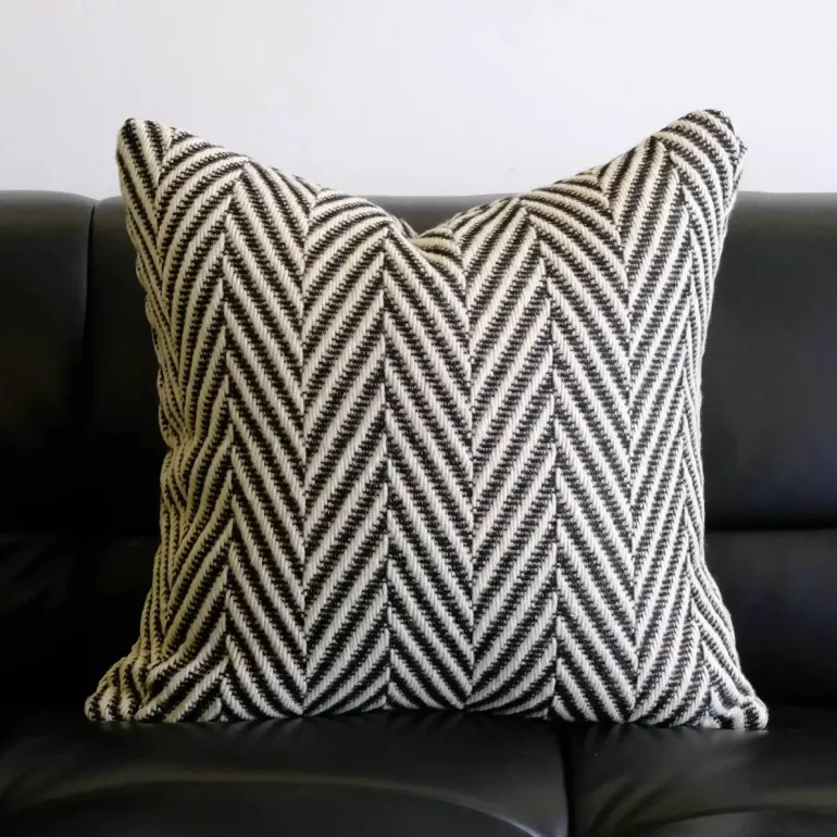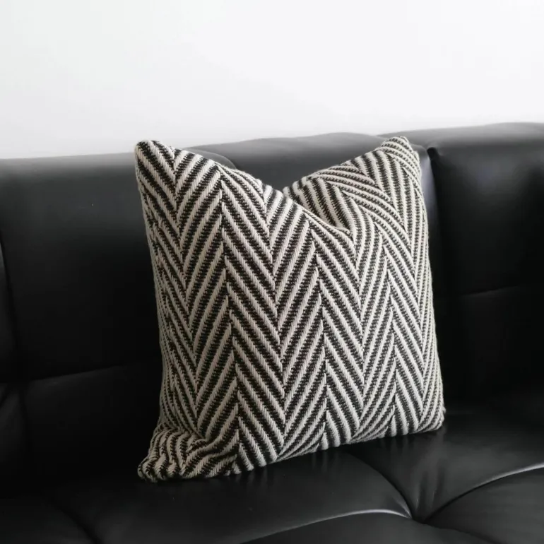 Wir präsentieren unsere wunderschön gefertigten Kissenbezüge mit gewebtem Wollhäkelmuster in auffälligem Schwarz und Weiß – die ideale Wahl für Ihre Wohnkultur. Diese dekorativen Bezüge bestehen aus einer luxuriösen Polyester-Baumwollmischung und bestechen durch ihr faszinierendes geometrisches Muster, das modernes Flair mit klassischem Charme harmonisch verbindet.