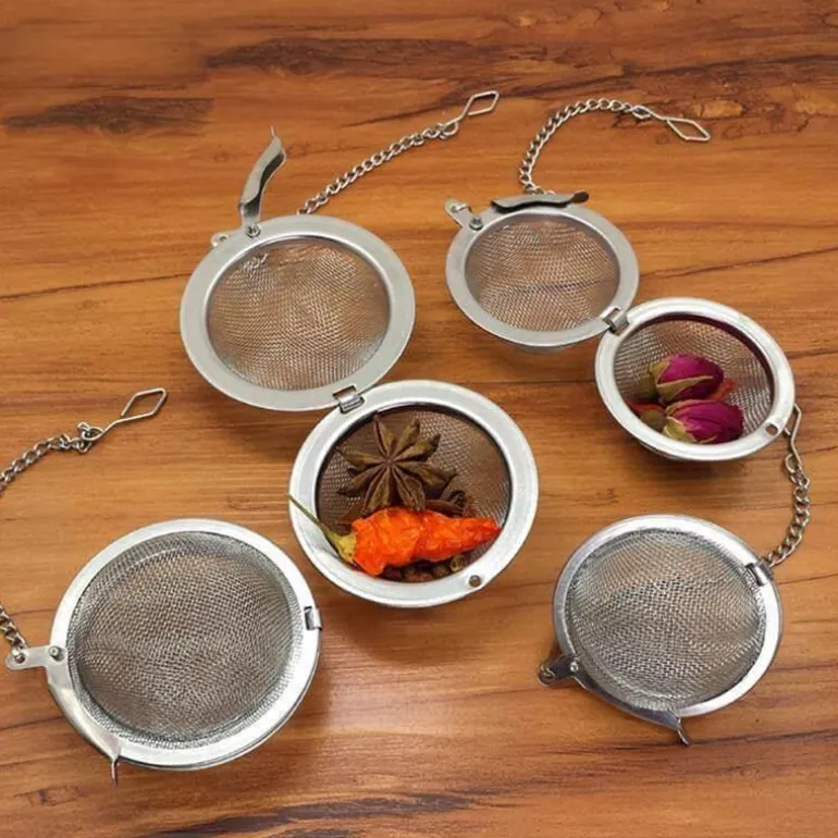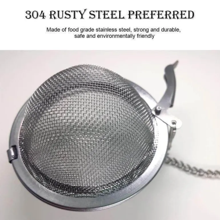 Erleben Sie den Komfort unserer Gewürzkugel aus Edelstahl, einem ultrafeinen Kräutersieb für müheloses Aufbrühen. Dank Haken und langer Kette lässt sich dieses Sieb ganz einfach an Ihrer Teetasse oder Kanne befestigen und nach dem Ziehen Ihres Tees leicht entnehmen.