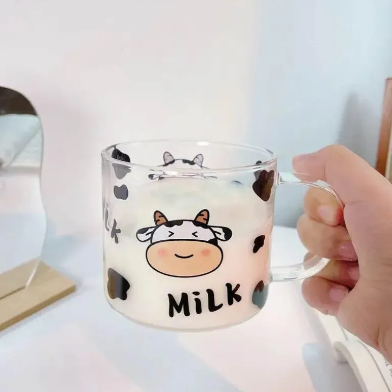 Entdecken Sie den Charme unseres 400 ml Glasbechers mit entzückendem Kuhmuster und innovativem Löffeldeckel – eine hervorragende Ergänzung für Ihre Küche oder Ihr Wohnheimzimmer. Hergestellt aus robustem Borosilikatglas vereint dieser Becher Stil und Funktionalität und ermöglicht Ihnen, Ihre Lieblingsgetränke auf einzigartige und auffällige Weise zu genießen.