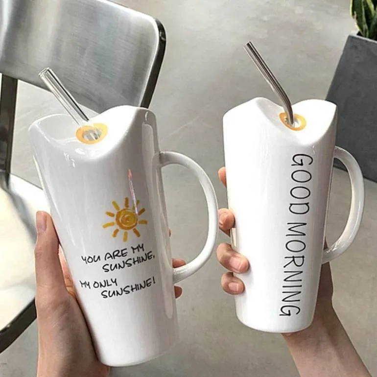 1 x eleganter Good Vibes-Keramikbecher und Strohhalm aus Stahl/Glas.