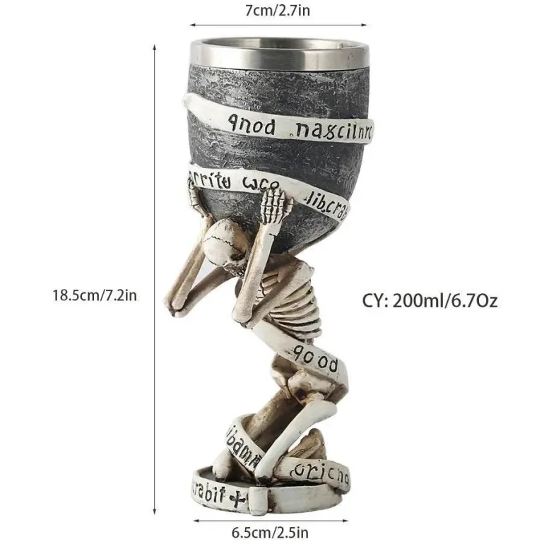 Mit einem großzügigen Fassungsvermögen von 200 ml (6,7 oz) eignet sich dieser Totenkopfkelch ideal zum unvergesslichen Servieren Ihrer Lieblingsgetränke. Ob als auffälliges Dekorationsstück, als Geschenk für einen Freund oder als einzigartiges Trinkgefäß, das zu spannenden Gesprächen anregt – seine Vielseitigkeit wird Ihre Gäste mit Sicherheit beeindrucken.