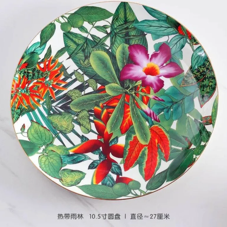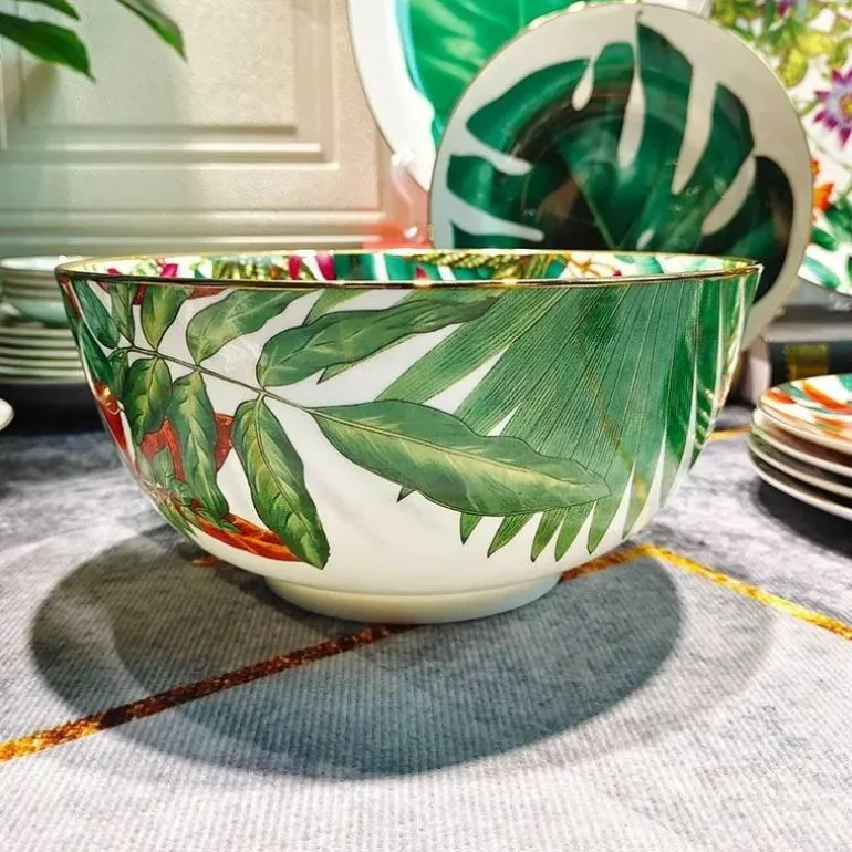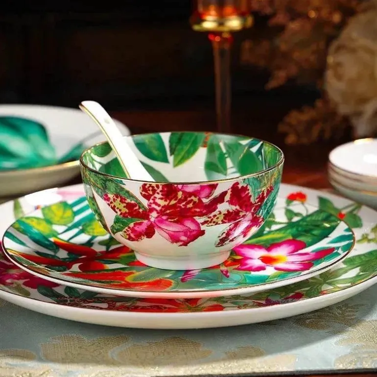 Mit einem bezaubernden Muster aus tropischen Regenwaldblättern und -blüten verleiht diese Kollektion Ihrem Tisch einen Hauch von Natur. Ob Sie feierliche Anlässe veranstalten oder gemütliche Mahlzeiten zu Hause genießen – die Green Leaf Collection ist für jeden Anlass das Richtige.