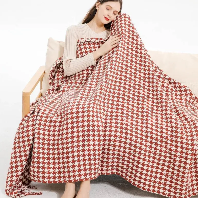 Diese Decke der Klasse A mit klassischer rechteckiger Form ist ideal für Erwachsene. Dank ihres geringen Gewichts und ihrer Tragbarkeit eignet sie sich hervorragend für Picknicks, Reisen oder als Wärmespender in kühlen Nächten zu Hause. Die Hahnentritt-Überwurfdecke eignet sich für verschiedene Umgebungen, darunter Krankenhäuser, Hotels und Flugzeuge, und sorgt für Komfort, wo immer Sie sich befinden.