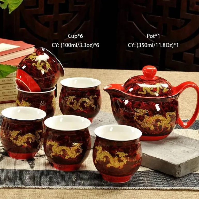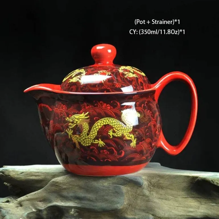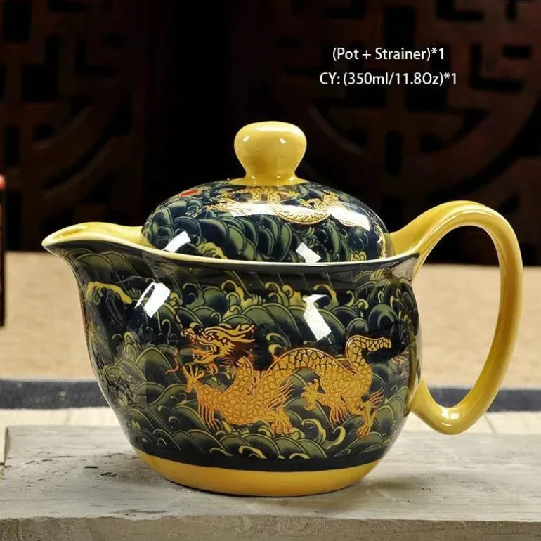 Diese Teekanne aus hochwertiger Keramik ist nicht nur ein praktisches Gefäß, sondern auch ein Blickfang, der Ihren Teetisch verschönert. Ihr einzigartiges Drachendesign ist inspiriert vom reichen chinesischen Erbe und verleiht Ihren Teeritualen einen Hauch kultureller Eleganz – egal, ob Sie Ihre Sammlung erweitern oder ein unvergessliches Geschenk für einen besonderen Menschen suchen.