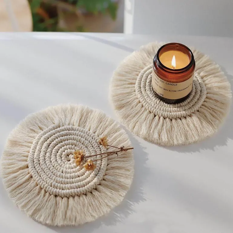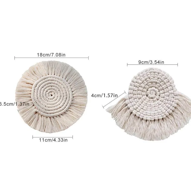 Dieser vielseitige Untersetzer ist vielseitig einsetzbar: Er eignet sich perfekt als Topfuntersetzer, Tischset, Platzset, rutschfeste Isolierunterlage und vieles mehr. Mit seiner böhmischen Folklore- und Vintage-Ästhetik verleiht der Nordic Macrame Coaster jedem Dekor eine charmante Note.