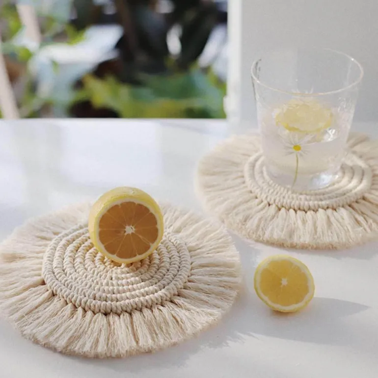 Der handgefertigte nordische Makramee-Untersetzer ist ein umweltfreundliches Accessoire, das Ihre Möbel vor Wasserflecken und Flecken schützt. Hergestellt aus 100 % Baumwollseil und natürlicher Jutekordel, bietet dieser langlebige Untersetzer nicht nur Funktionalität, sondern ist auch leicht zu reinigen und somit ideal für den täglichen Gebrauch.