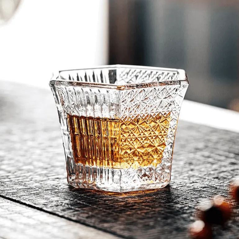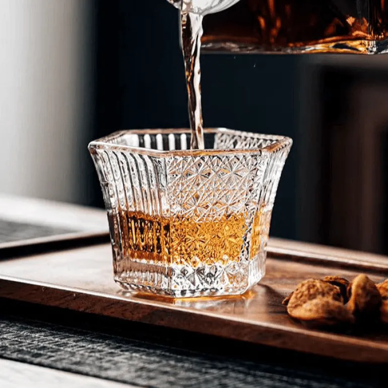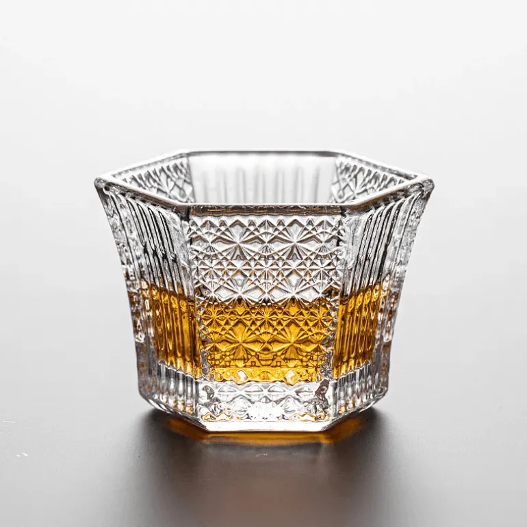 Erweitern Sie Ihre Bar-Kollektion mit dem Hatch 44-Oz-Kristallglas. Seine markante, facettenreiche Textur fängt das Licht bei jedem Schluck wunderschön ein und reflektiert es. Dieses elegante Trinkgefäß vereint moderne Ästhetik mit funktionalem Design. Die weite Öffnung erleichtert das Ausgießen, und der handgeschliffene Griff liegt angenehm in der Hand. Ideal zum Servieren Ihrer Lieblingscocktails oder Spirituosen. Das Glas fasst 100 ml und besticht durch sein filigranes geometrisches Muster, das jedem Anlass eine raffinierte Note verleiht. Erleben Sie die perfekte Kombination aus Stil und Funktionalität mit diesem atemberaubenden Trinkgefäß.