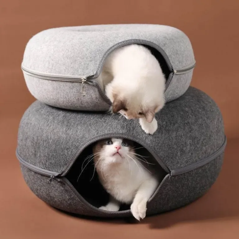 – 1x Donut-Haustierhöhlenbett aus natürlichem Filz.