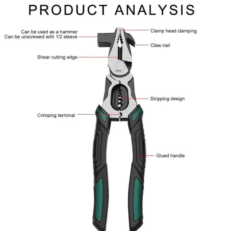 This innovative multifunctional tool is designed for efficiency and precision, making it ideal for a variety of tasks. By combining pliers and a hammer into a single, streamlined design, this heavy-duty tool becomes an indispensable addition to any toolbox.