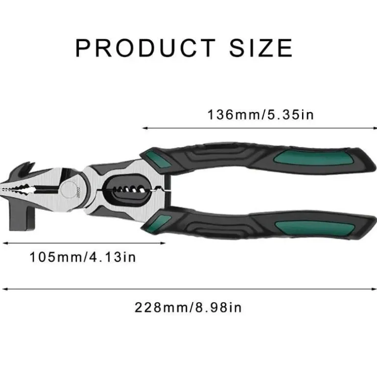 * **Versatile Functionality**: With its dual capability as both pliers and a hammer, this tool facilitates quick transitions between tasks, eliminating the need to switch between multiple tools.