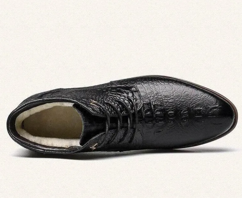 Bleiben Sie diesen Winter warm und stilvoll mit unseren dicken Herren-Winterstiefeln aus Leder. Diese Stiefel sind so konzipiert, dass Ihre Füße auch bei kaltem Wetter kuschelig warm bleiben. Die abgerundete Spitze sorgt für eine geräumige Passform und garantiert auch bei langem Tragen Komfort. Erhältlich in verschiedenen Farben, von Dunkelbraun bis hin zu klassischem Schwarz, verbinden diese Stiefel mühelos Mode und Funktionalität und ermöglichen es Ihnen, Ihren persönlichen Stil auszudrücken und gleichzeitig bequem zu bleiben.