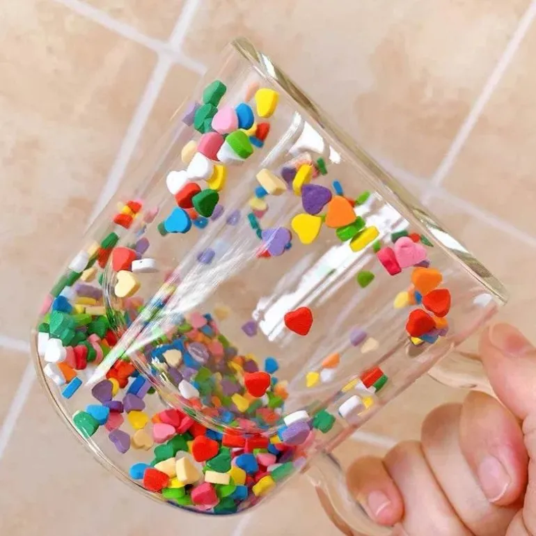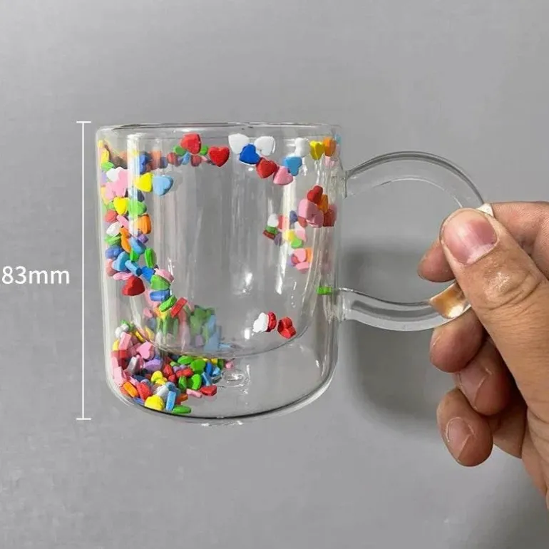 Entdecken Sie den bezaubernden herzförmigen Treibsandglasbecher, ein kreatives Stück, das lebendiges Design mit funktionaler Eleganz für Ihre Trinkgefäßsammlung verbindet. Dieser doppelwandige Becher aus hochwertigem Glas ist eine ausgezeichnete Wahl für Partys und besondere Anlässe und verleiht Ihren Zusammenkünften Stil und Funktionalität.