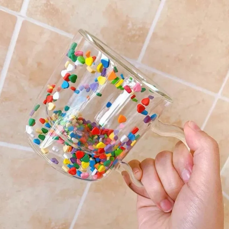 Die markante Herzform wertet die Präsentation Ihrer Lieblingsgetränke auf, während der faszinierende Treibsandeffekt im Inneren für eine dynamische Optik sorgt, die garantiert für Gesprächsstoff sorgt. Jeder Schluck wird zu einem köstlichen Erlebnis, abgerundet durch das mehrfarbige Glas, das jedem Getränk eine verspielte Note verleiht.