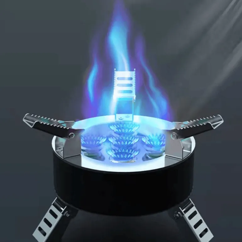 Für zusätzliche Stabilität auf unebenem Gelände verfügt der Ofen über zusammenklappbare Beine, die seine Zuverlässigkeit bei jedem Outdoor-Abenteuer erhöhen.