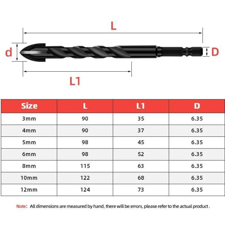 – Bohrerdurchmesseroptionen: 3 mm, 4 mm, 5 mm, 6 mm, 8 mm, 10 mm, 12 mm