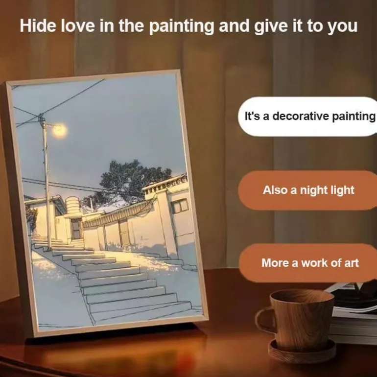 Verwandeln Sie Ihren Wohnraum mit einem vielseitigen, im Dunkeln leuchtenden Dekorationsstück, das jedem Raum eine einzigartige Note verleiht. Das leuchtende Nachtlichtgemälde bietet anpassbare Lichtfarben und ermöglicht Ihnen, eine bezaubernde Atmosphäre zu schaffen, die die Sinne anspricht. Hängen Sie es als auffälliges Dekorationsstück an die Wand oder stellen Sie es auf einen Tisch, um ein beruhigendes Nachtlichterlebnis zu genießen; dieses Objekt wertet Ihre Umgebung wunderschön auf.