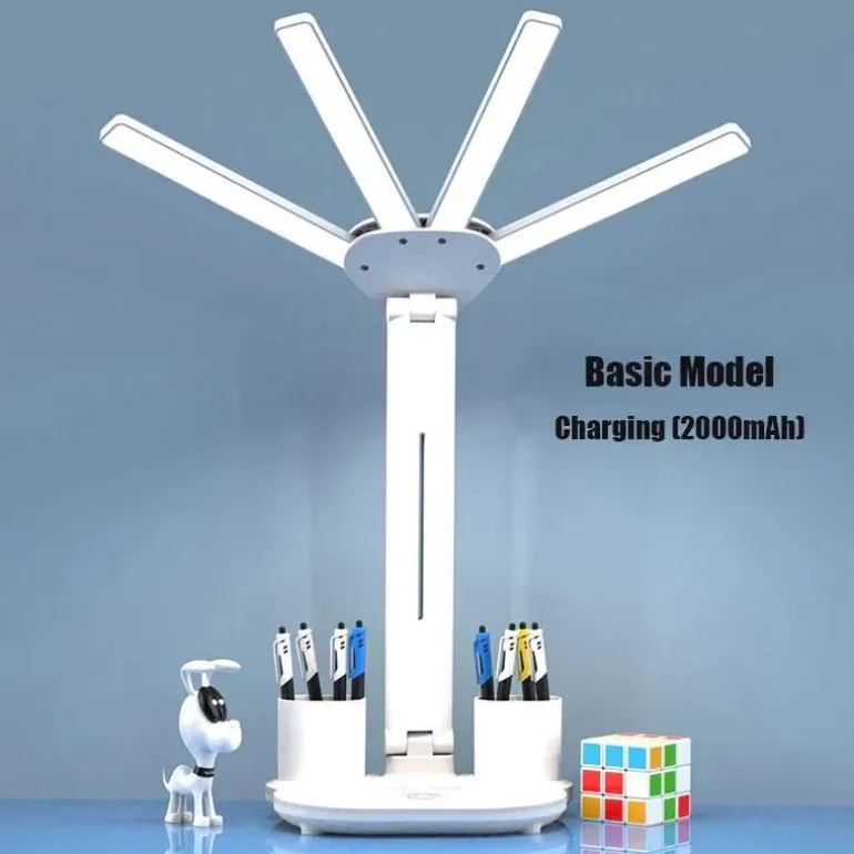 Wir präsentieren die innovative 3-in-1-Multifunktions-Smart-Tischleuchte mit vier Leuchtenköpfen – ein praktisches Schreibtischaccessoire für alle, die Wert auf Effizienz und Komfort legen. Diese vielseitige Leuchte vereint helles LED-Licht, einen praktischen Lüfter und eine intelligente Digitaluhr und ist damit ein unverzichtbares Werkzeug für mehr Produktivität in jeder Umgebung – ob zu Hause, im Büro oder unterwegs. Das faltbare Design und die wiederaufladbare USB-Funktion machen die Leuchte tragbar und einfach zu verstauen. So können Sie sie bei Nichtgebrauch problemlos transportieren oder verstauen.