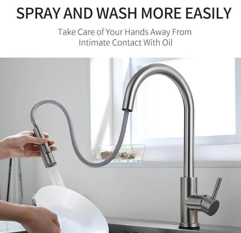 – **360°-Drehung:** Der Wasserhahn lässt sich frei drehen, sodass schwer erreichbare Stellen mühelos gereinigt und hartnäckige Flecken weggespült werden können.