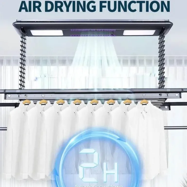 Optimieren Sie Ihre Wäscheroutine mit dem automatischen, intelligenten Wäschetrockner-System, einer modernen Lösung für effizientes und freihändiges Trocknen Ihrer Kleidung. Dieses innovative, an der Decke montierte Gestell eignet sich perfekt für moderne Wohnungen und wird elektronisch per Fernbedienung oder Smartphone-App gesteuert, sodass Sie Ihre Wäsche mühelos verwalten können.