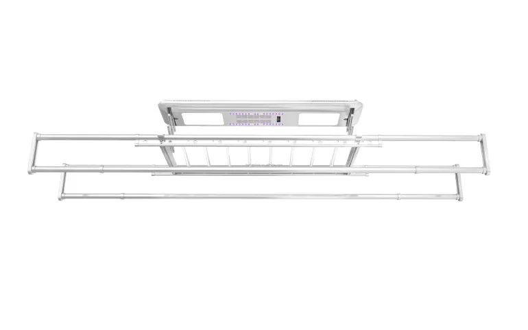 Der Wäscheständer verfügt über verstellbare Teleskopstangen und ein umfassendes Trocknungssystem mit eingebauter Heizung, Ventilator, UV-Licht zur Sterilisation und zwei LED-Leuchten für bessere Sichtbarkeit während des Gebrauchs. Ob im Wohnzimmer, in der Waschküche, auf dem Balkon oder im Flur – dieser vielseitige Wäscheständer bietet nicht nur Komfort, sondern hilft auch, den verfügbaren Platz optimal zu nutzen.