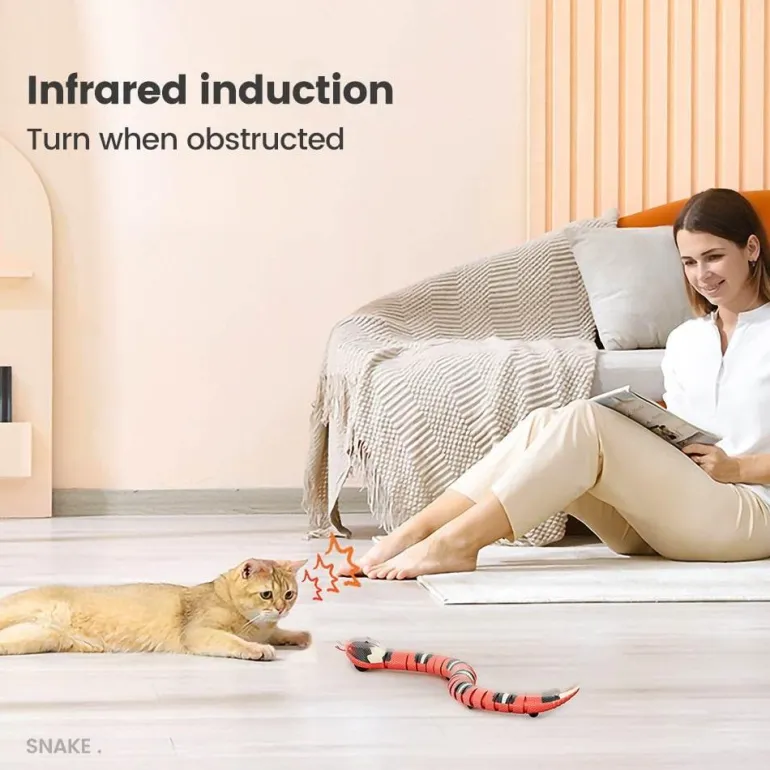 Fördern Sie den natürlichen Jagdinstinkt Ihrer Katze mit dieser innovativen, interaktiven Spielzeugschlange. Halten Sie einfach Ihre Hand davor und beobachten Sie, wie die Schlange sanft vorwärts gleitet. Ihre Augen flackern als Reaktion auf Ihre Bewegung. Das durchdachte Design ermöglicht es der Schlange, Hindernisse zu überwinden, indem sie automatisch umkehrt und ihre Richtung ändert. Das sorgt für ein unterhaltsames Spielerlebnis, das Ihre Katze bei Laune hält.