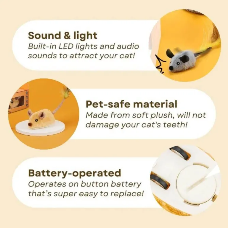 Dieses Spielzeug ist einer echten Maus nachempfunden und verleiht ihm eine spielerische Note, die die Aufmerksamkeit Ihrer Katze garantiert fesselt und aus gewöhnlicher Spielzeit ein unterhaltsames Abenteuer macht.