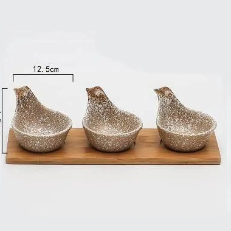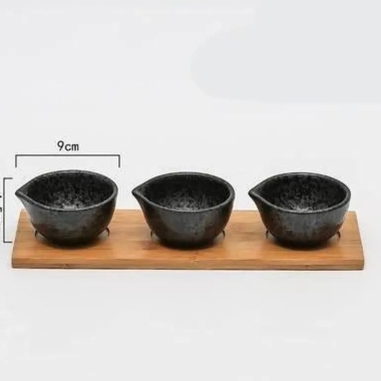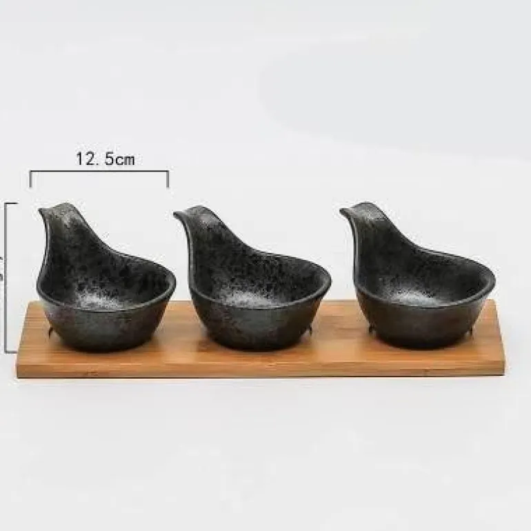 1 x 3er-Set Snackteller mit Holztablett – ideal für die stilvolle Präsentation Ihrer Lieblingssnacks. Verschönern Sie Ihre Gäste mit diesem charmanten Geschirr, das Kunstfertigkeit und Funktionalität vereint.