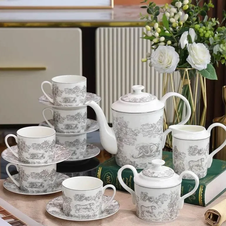 Entdecken Sie den Charme des Jungle Lion Bone China Tee- und Kaffeesets, einer raffinierten Kollektion, die Ihren Tee- und Kaffeegenuss veredelt. Jedes Stück ist aus feinem Bone China gefertigt und vereint Luxus und Funktionalität – eine wertvolle Ergänzung für Ihr Tischgeschirr.