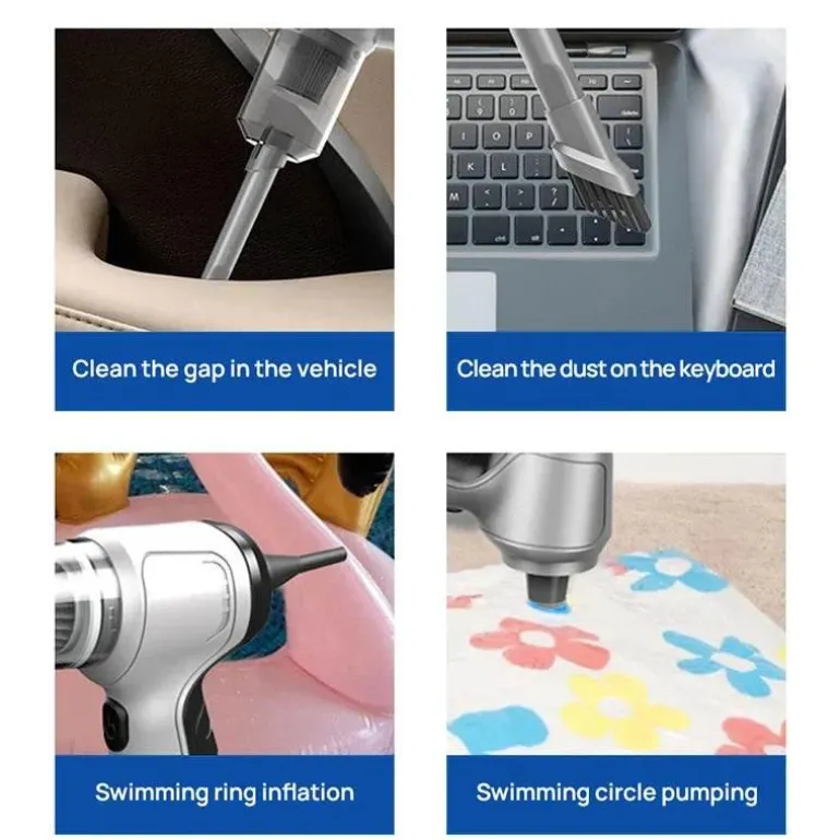 Erleben Sie die Funktionalität des kabellosen Handstaubsaugers, eines vielseitigen 3-in-1-Geräts, das Ihr Zuhause und Ihr Auto makellos sauber hält. Mit seinem schlanken und ergonomischen Design in elegantem Grau bietet dieser Staubsauger eine beeindruckende Saugleistung von bis zu 9000 Pa und ist damit sowohl für Trocken- als auch für Nassreinigungsaufgaben äußerst effektiv. Dank seiner Doppelfunktionalität beseitigen Sie mühelos alltägliche Verschmutzungen, egal ob zu Hause oder unterwegs. Das robuste ABS-Material sorgt für Langlebigkeit und ein leichtes Tragegefühl.