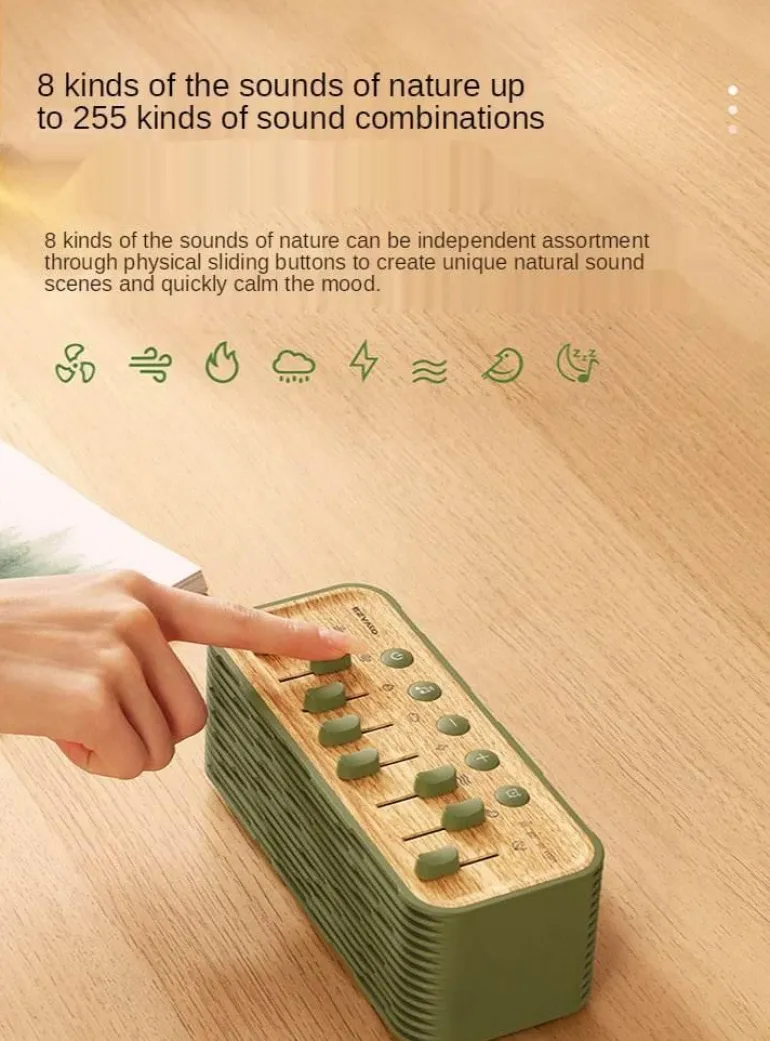 Der Lautsprecher wurde für Ihre Entspannung entwickelt und bietet 8 natürliche Soundeffekte für eine ruhige Atmosphäre sowie 255 kombinierte Klänge für ein vielseitiges Hörerlebnis. Dank Bluetooth ist eine einfache Verbindung möglich, sodass Sie problemlos Musik von Ihren Geräten abspielen können. Dank der integrierten Zeitschaltfunktion können Sie die automatische Abschaltung einstellen – perfekt für ruhige Momente.