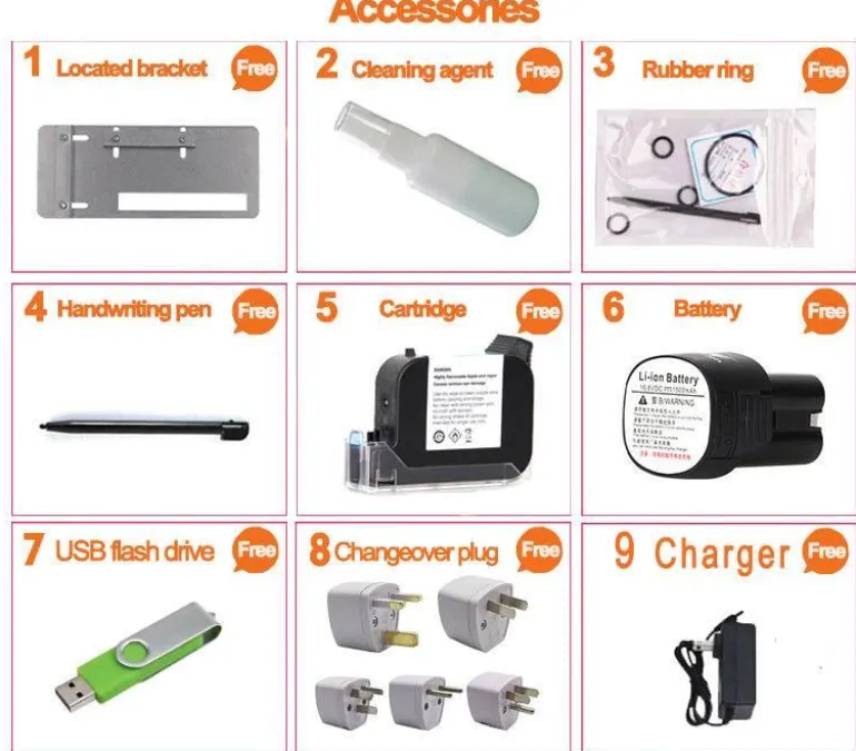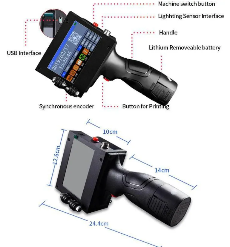 Dieser innovative tragbare Tintenstrahldrucker bietet 360°-Druckfunktionen und ermöglicht so den Druck vielfältiger Inhalte, darunter variable Seriennummern, Symbole, QR-Codes und Produktionsdetails. Er eignet sich perfekt für Materialien wie Karton, Holz, Rohre, Metall, Glas, Kunststoff und Stoff. Für optimale Ergebnisse auf gewölbten, unebenen oder rauen Oberflächen sorgen die mitgelieferten Hilfsmittel – wie beispielsweise ein Blechpositionierer.