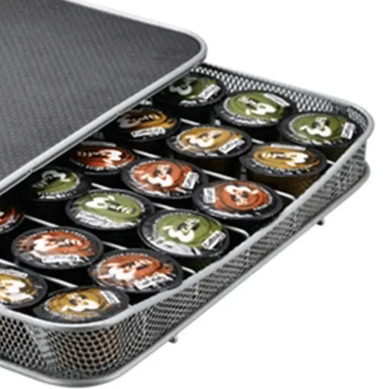 Wir präsentieren einen praktischen Organizer speziell für Fans von Dolce Gusto- und Nespresso-Kaffeekapseln. Dieses Aufbewahrungsregal aus hochwertigem Metall vereint Langlebigkeit und Stil und sorgt dafür, dass Ihre Kapseln übersichtlich und leicht zugänglich aufbewahrt werden.