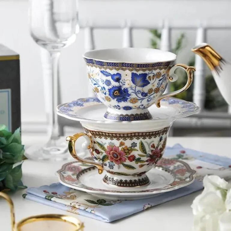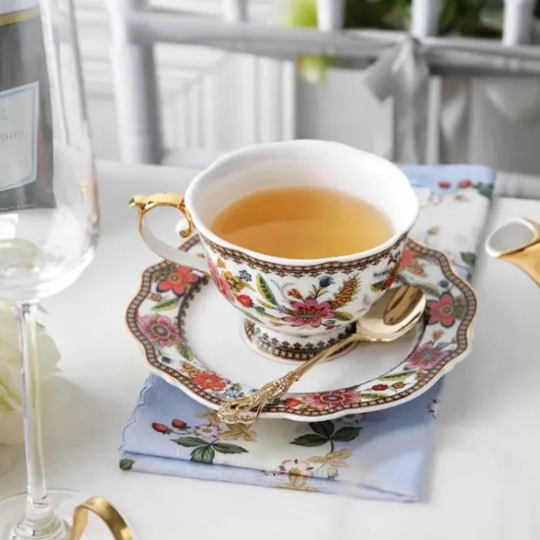Dieses Kaffeetassen- und Untertassen-Set aus hochwertigem Bone China strahlt Eleganz und Charme aus. Mit einem großzügigen Fassungsvermögen von 220 ml lädt es Sie ein, Ihre Lieblings-Heißgetränke zu genießen, sei es ein kräftiger schwarzer Kaffee oder ein wohltuender Kräutertee. Das zarte Blumenmuster, wunderschön ergänzt durch die glänzende Oberfläche und den Goldrand, verleiht jedem Tisch eine luxuriöse Note.