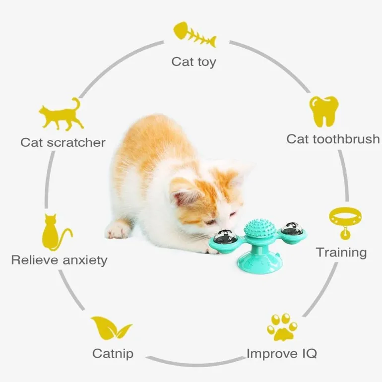 – 1x drehbares interaktives Windmühlenspielzeug für Katzenmassage