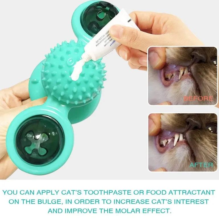 Darüber hinaus massiert dieses multifunktionale Spielzeug Gesicht und Fell Ihrer Katze angenehm und bietet gleichzeitig die einzigartige Möglichkeit, Lieblingsleckerlis oder Zahnpasta in das weiche Granulat einzuarbeiten. Beim Beißen und Spielen trägt es zur effektiven Zahnreinigung Ihrer Katze bei.