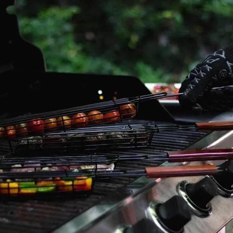 Wenn Sie gerne grillen, aber die dabei entstehende Unordnung frustrierend finden, bietet dieser Grillkorb die praktische Lösung. Er hält verschiedene Lebensmittel sicher fest, verhindert schmutzige Hände und reduziert das Verbrennungsrisiko beim Wenden von Burgern oder Hähnchenbrust. Legen Sie Ihr Grillgut einfach in den Korb und lassen Sie es sorgenfrei perfekt garen. Freuen Sie sich jedes Mal auf köstliche, gleichmäßig gegrillte Gerichte.