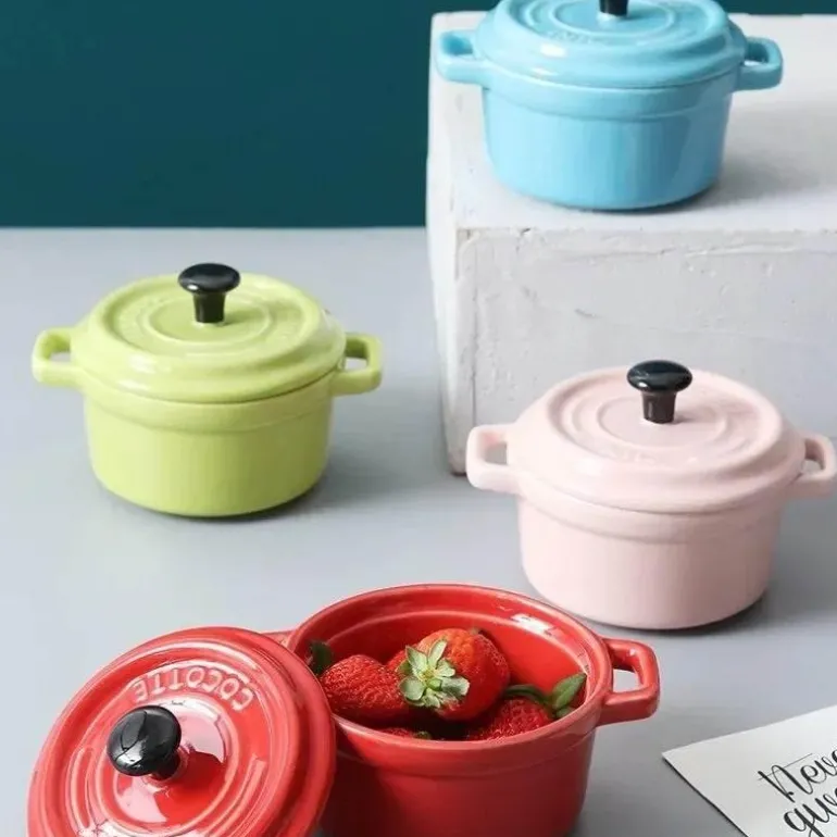 Werten Sie Ihr Küchengeschirr mit diesen multifunktionalen Auflaufförmchen auf, die von der CIQ-Qualitätssicherung zertifiziert sind. Diese Keramik-Auflaufförmchen mit Deckel eignen sich perfekt für zwanglose und formelle Mahlzeiten und sind eine stilvolle und praktische Wahl für jedes Zuhause. Vereinen Sie Funktionalität und Stil mit diesen wunderschön gefertigten Schalen und bereichern Sie Ihr kulinarisches Erlebnis.