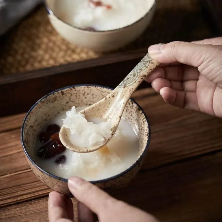 Erleben Sie die Eleganz unseres Keramik-Suppenlöffel-Sets mit nostalgischem Retro-Flair, das sowohl zu Ramen- als auch zu Reisgerichten passt. Ob Sie zu Hause eine Feier veranstalten oder Kunden im Restaurant bedienen – diese hochwertigen Keramiklöffel bereichern Ihr kulinarisches Erlebnis mit ihrem stilvollen Design.